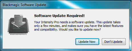 - During the installation, you may be prompted with a “software update” message from Blackmagic Software similar to the image below. If you see this message, you must click “Update Now”.