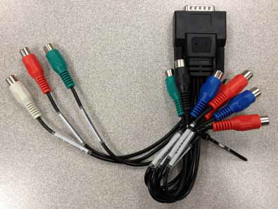 The breakout cable attaches to the Intensity Pro card. The audio and video connections are as follows: