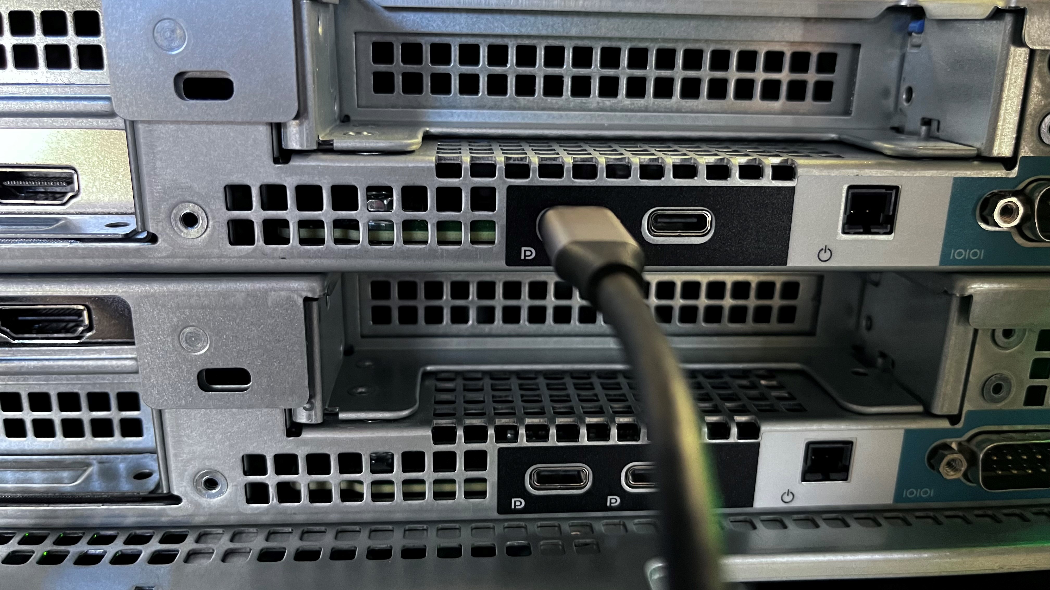 Plug the keyboard and mouse into the USB C to VGA/HDMI adapter that is included. Connect your computer monitor or KVM system to the VGA or HDMI port of the adapter. *This is for Control Display, *NOT* for Program Video Output. See Step 4: for Program Video Output.