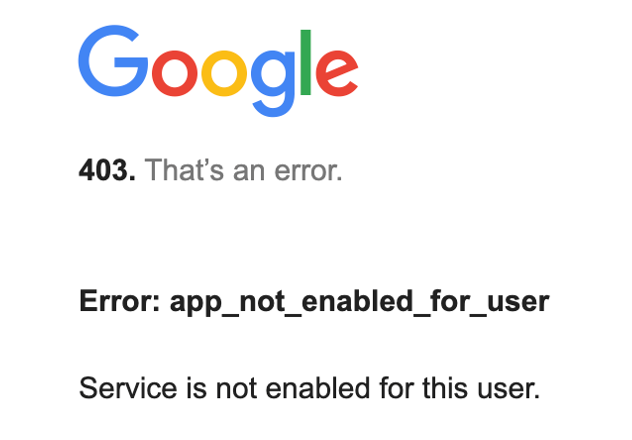 Issue: Error is returned from Google Error: app_not_enabled_for_user Service is not enabled for this user."