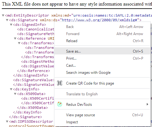 - Copy the IDP Metadata URL from ClassLink and paste it in a browser (Chrome preferably)