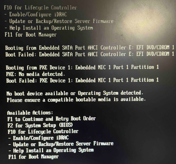 Physical Server - No Boot Device Available