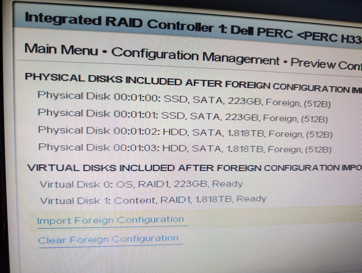 - In this case, the RAID card appears to have "forgotten" its RAID configuration as stored on the RAID controller card. However, the RAID configuration is still present. Note the screen called "Foreign View" shown in the above screen shot. The RAID controller recognizes that disks that had previously been used in a RAID are attached and are displayed there. Navigate to the Foreign View screen by using Ctrl+N.