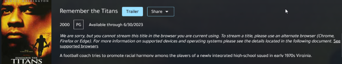 Issue: If your organization uses one of the programs below you may experience issues with the browser not detecting a valid version and displaying a message stating "We are sorry, but you cannot stream this title in the browser you are currently using".