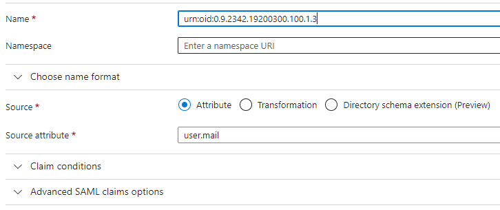 - user.mail --> urn:oid:0.9.2342.19200300.100.1.3