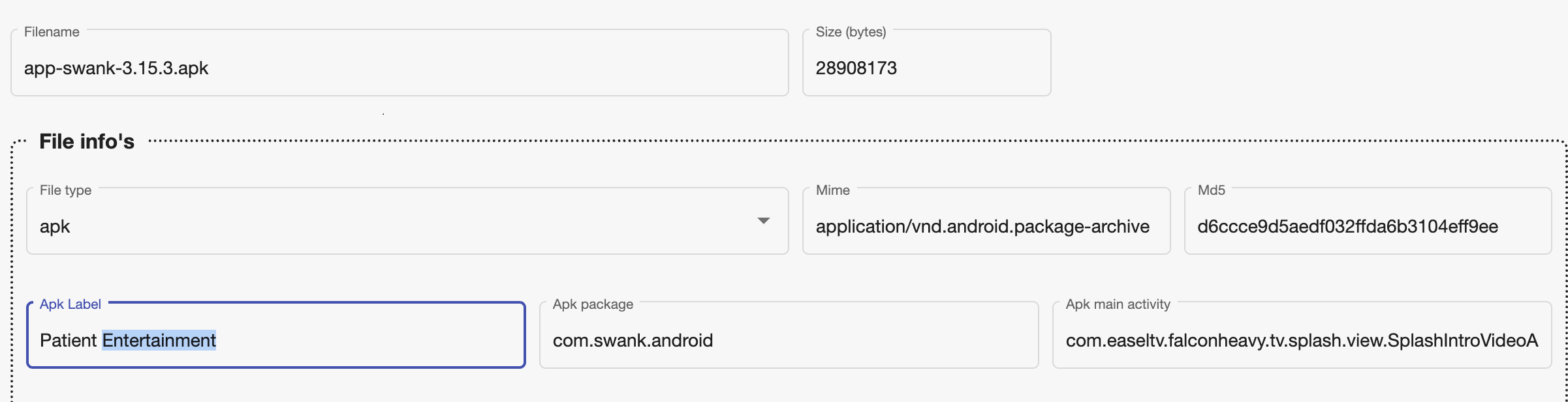 The latest Swank-provided APK file (make sure the version you upload matches the version you intend to deploy)