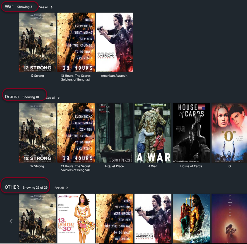 - Titles may have multiple categories