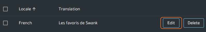 Edit Translation - Locate the translation either by using search or scrolling through the list in the Translation Manager, select the Edit button, modify the translation, and click Save.