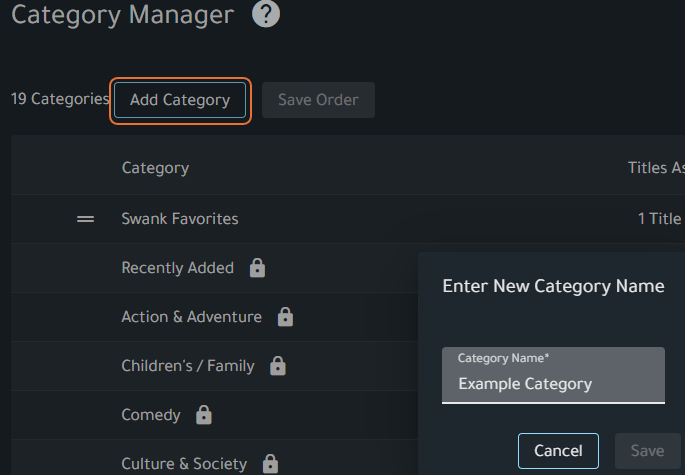 Note: If you are using the Swank Streaming Server for fewer than ten titles, you do not need to use the Category Manager.