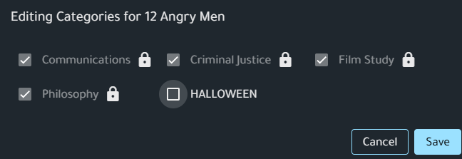Category Manager allows Administrators to create custom categories or groupings of films. Categories created by Administrators are only visible to individuals with the user role, not Administrators or Instructors. However, they can preview newly created categories by clicking on Preview Site on the left-hand menu.